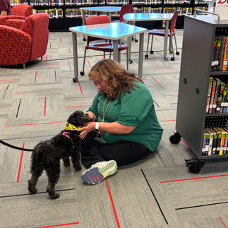 Grief doesn’t follow a schedule. It shows up in the middle of math class, during lunch, or while walking down the hallway. Offering therapy dogs in the library gave our school a structured, supportive way to process some of those emotions.