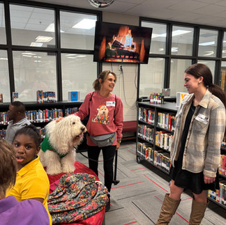 With the help of K9 Angels and the coordination of Judith Kemp, the library was transformed into a welcoming haven for our students and staff. Soft voices, wagging tails, and the calm presence of the therapy dogs filled the space in a way that words alone could not.