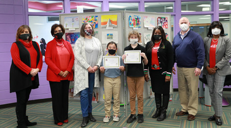 The Baldwin County Board of Education recognized the winners of the Georgia College Dr. Martin Luther King, Jr. Week 2021 Literary Response Competition: Lauryn Hurst and Zion Wesley from Midway Hills Academy, Trinity Johnson from Baldwin High School, and Riya Patel and Jessica Biyogmam from Georgia College Early College. The competition was part of the Dr. Martin Luther King Week 2021 festivities held by the Georgia College Cultural Center and the Office of Inclusive Excellence. To read more and to view individual photos of each winner, visit the following link: MLK Literary Response Winners.