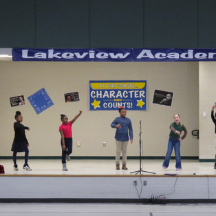 Lakeview Academy celebrated Black History Month with a culminating presentation highlighting the artistic, writing, dramatic, and performing talents of our students. The school foyer was decorated with created figures of historic African-Americans. Some figures included intricate details including facial features or clothing attire. Several hand-drawn posters that included biographical data lined the walls of the school gym.